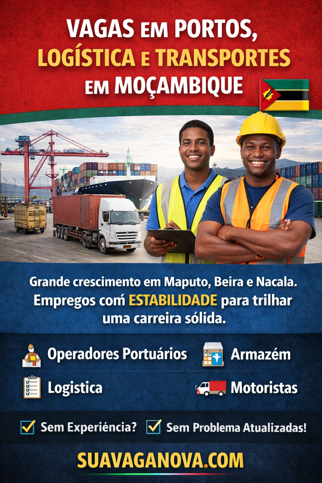 👉 Acompanhe o Suavaganova para vagas atualizadas em Maputo, Beira e Nacala.