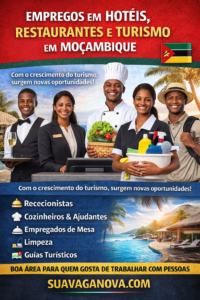 Empregos em Hotéis, Restaurantes e Turismo em Moçambique SUAVAGAS Empregos em Hotéis, Restaurantes e Turismo em Moçambique suavaga January 23, 2026 O setor de hotéis, restaurantes e turismo está em crescimento em Moçambique, impulsionado pelo aumento do turismo...Read More